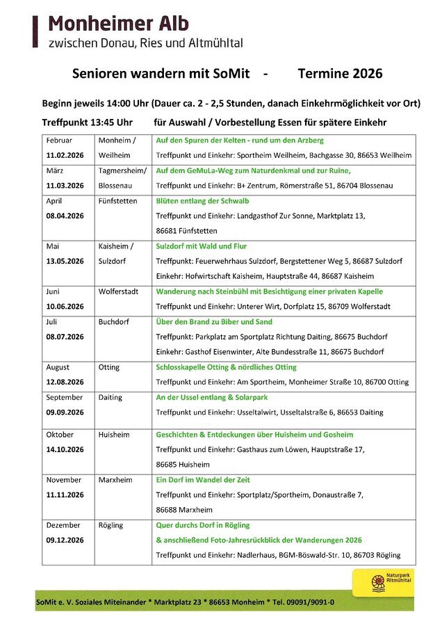 Treffpunkt und Einkehr: Monheimer Str. 10; 86700 Otting
